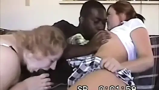Young cutie pies with natural tits love sharing one hard cock in bed